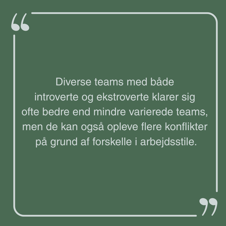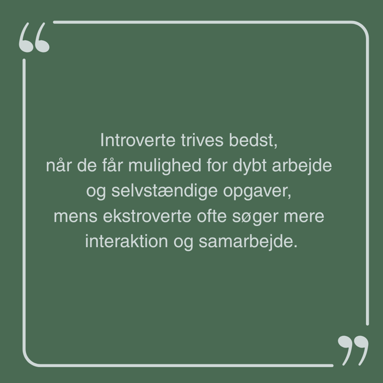 Det er vigtigt at skabe en balance mellem teamwork og individuelt arbejde. Introverte har brug for tid til fordybelse for at kunne tænke kreativt og levere deres bedste arbejde.