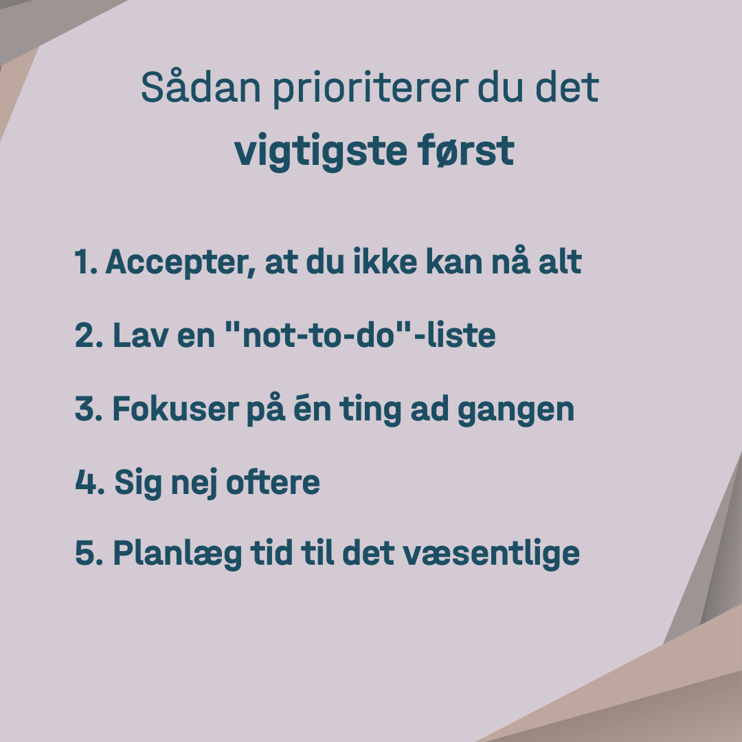 Det er umuligt at få tid til alt. Når du accepterer dette, kan du begynde at prioritere det vigtigste.