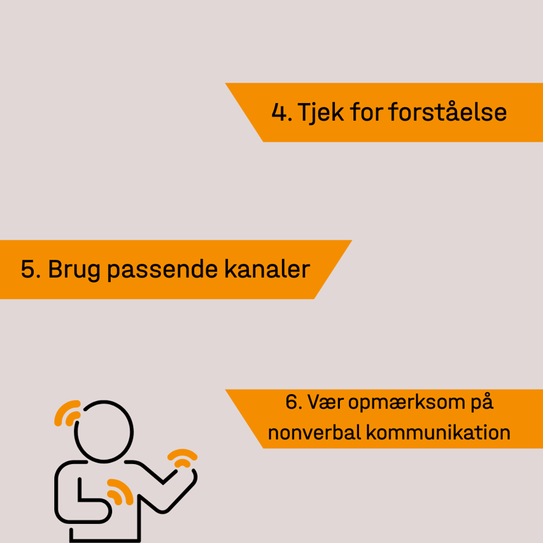 Din tone, kropssprog og øjenkontakt kan påvirke, hvordan dit budskab opfattes. Sørg for, at de matcher din hensigt.