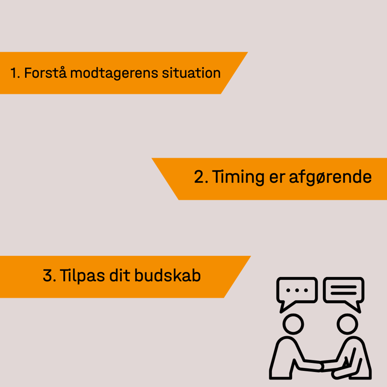 Vær fleksibel, og juster dit budskab efter modtagerens nuværende situation og behov.