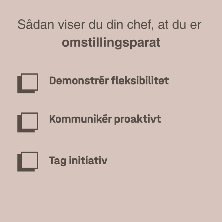 Chefer elsker omstillingsparate medarbejdere, og er du omstillingsparat bliver arbejdet i øvrigt også meget sjovere. Se her, hvordan du gør