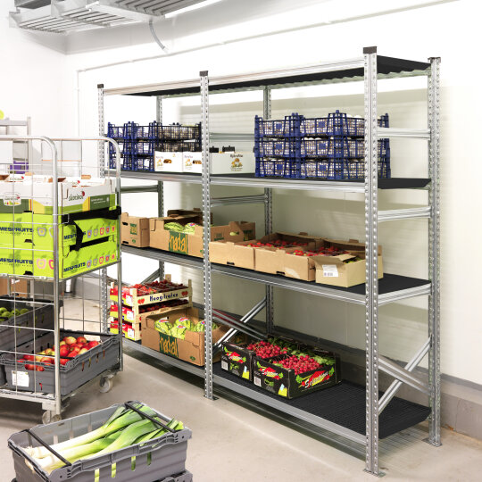 Med et system af reoler og opbevaringskasser kan man nemt skabe struktur i lageret og sikre, at råvarer håndteres korrekt fra levering til tilberedning.