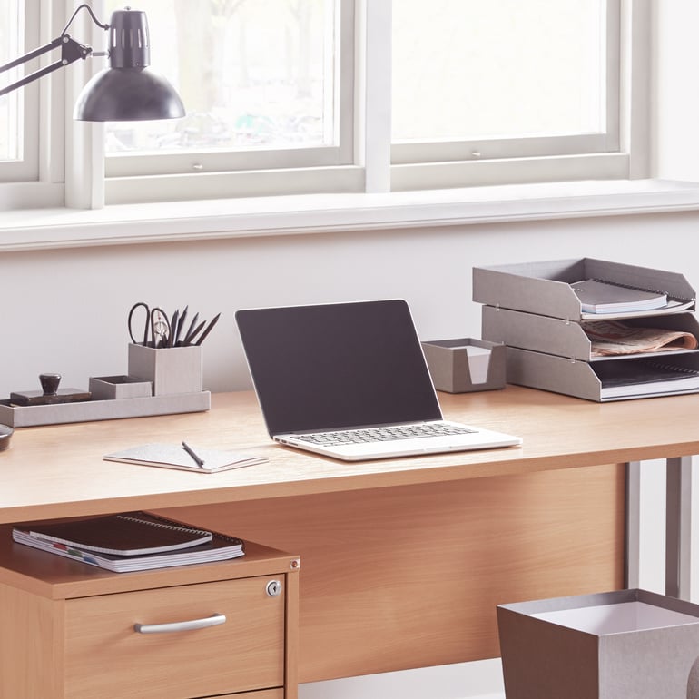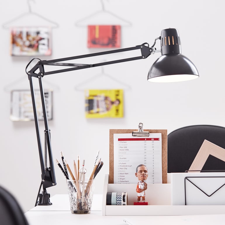 God belysning har stor indflydelse på arbejdsindsatsen. Naturligt lys er altid det bedste, så prøv at placere skrivebordet så tæt på et vindue som muligt. Din arbejdsplads bør også have tilstrækkelig loftsbelysning, så du ikke kun er afhængig af dagslyset. En bordlampe gør det nemt at arbejde selv om aftenen. For ikke at anstrenge øjnene unødigt, bør lyset ikke skinne direkte på computerskærmen.
