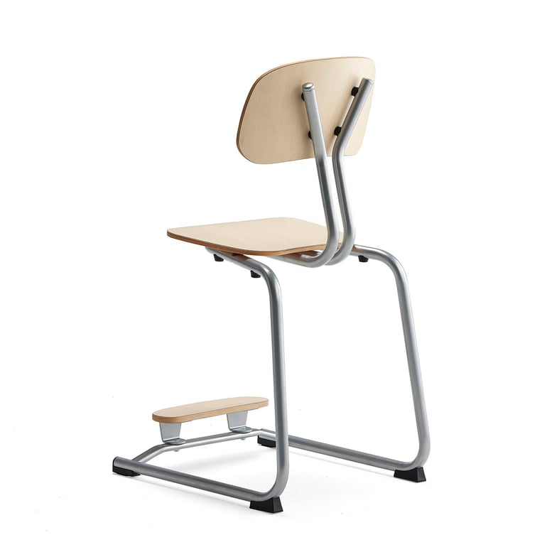 Stolen fås i forskellige varianter, der passer til skolernes forskellige behov. YNGVE fås med ben- og medestel, i flere højder og med eller uden fodstøtte. Fodstøtten, der følger med, kan justeres i to forskellige højder.
